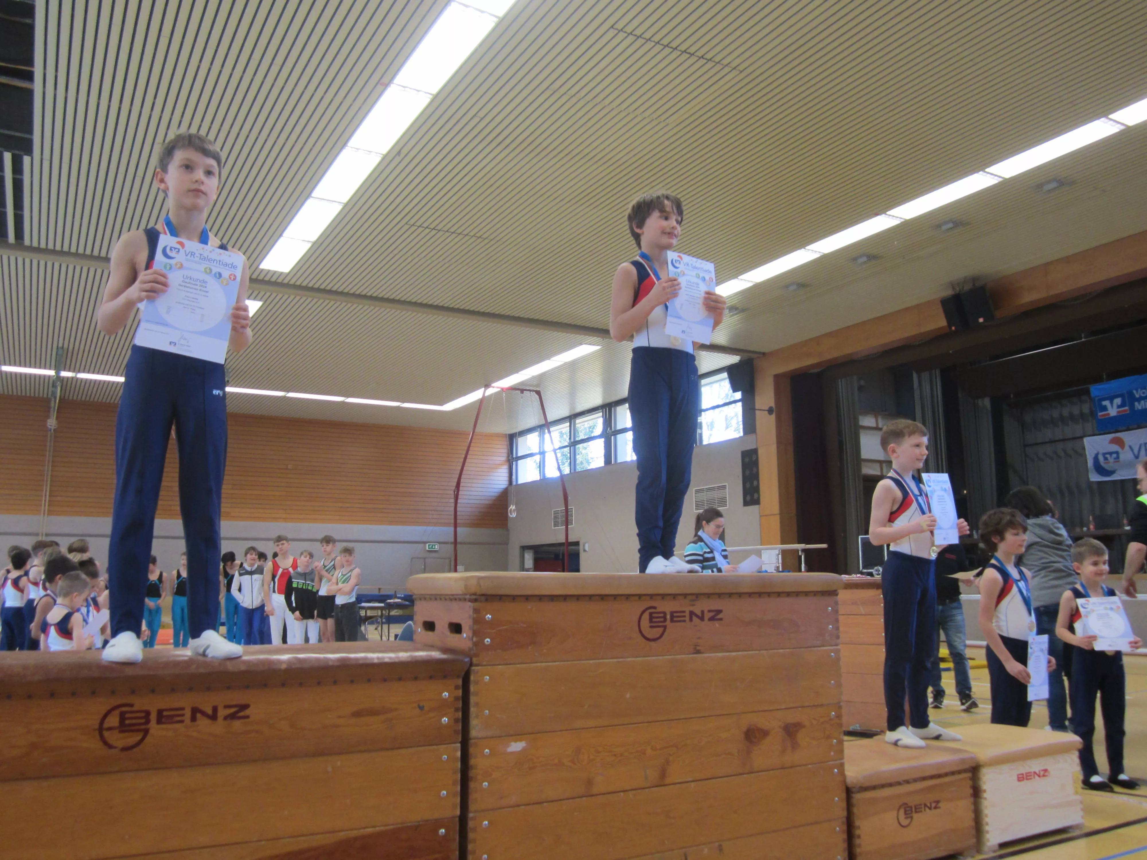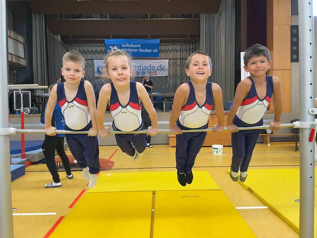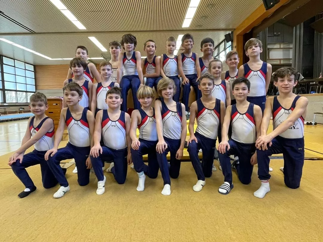 Überlegene Sieger in ihren Altersklassen wurden Adrian Lorenz und Nick Zimmermann. Adrian turnte am Pauschenpferd die Höchstnote von 16,4 Pkt. und Nick gelang dies am Sprung mit 16,2 Pkt. Einen spannenden Zweikampf um den 1. Platz lieferten sich Julian Scholze und Finn Lorenz. Durch die bessere Bodenübung gewann Julian (12,8 zu 12,2 Pkt.). Ebenso spannend war es bei den Achtjährigen. Hier siegte Nick Adam mit 0,1 Pkt. vor Hannes Hauck. Den fünften Titel erturnte sich Samuel Thüringer bei den Elfjährigen.