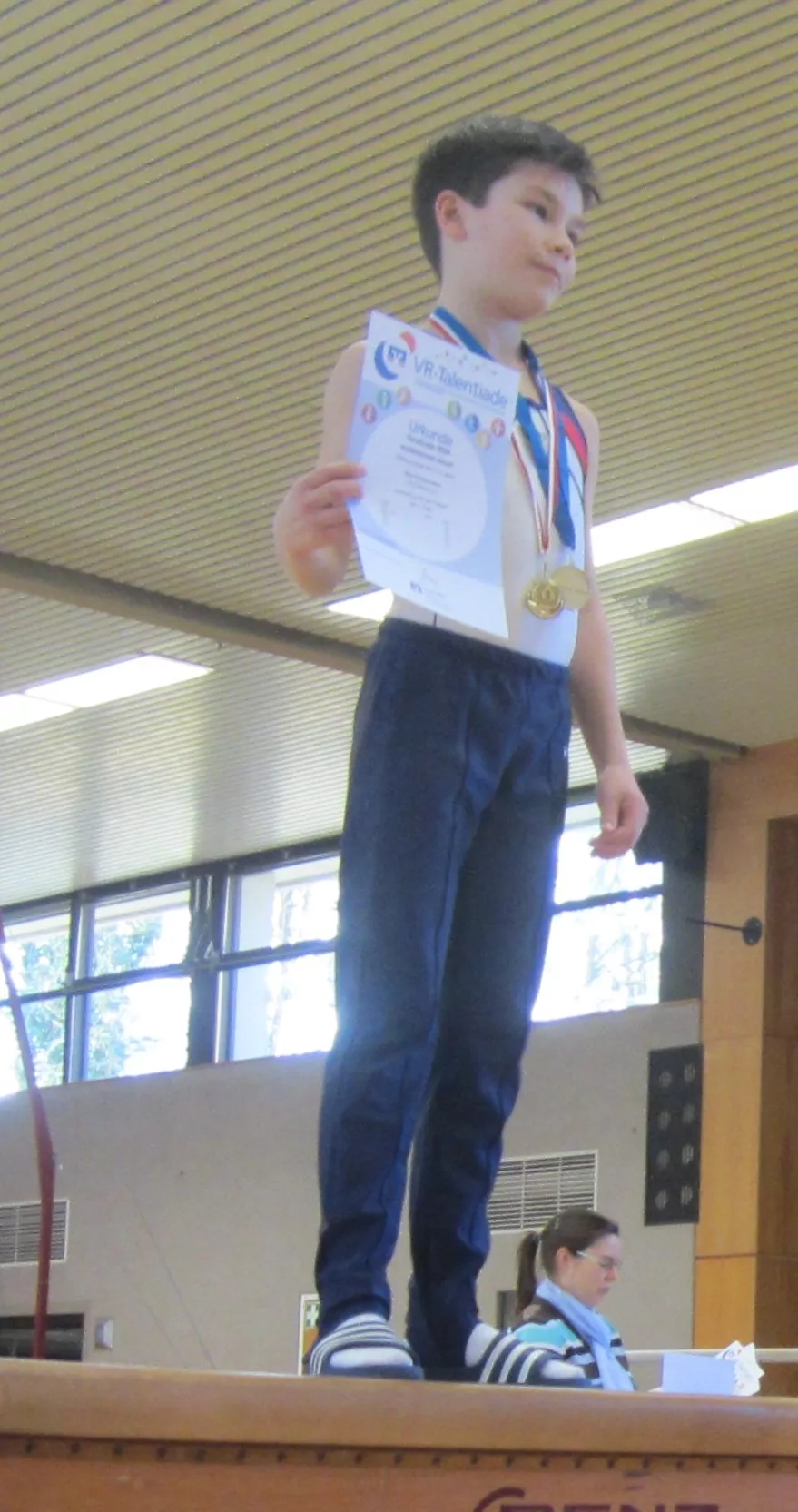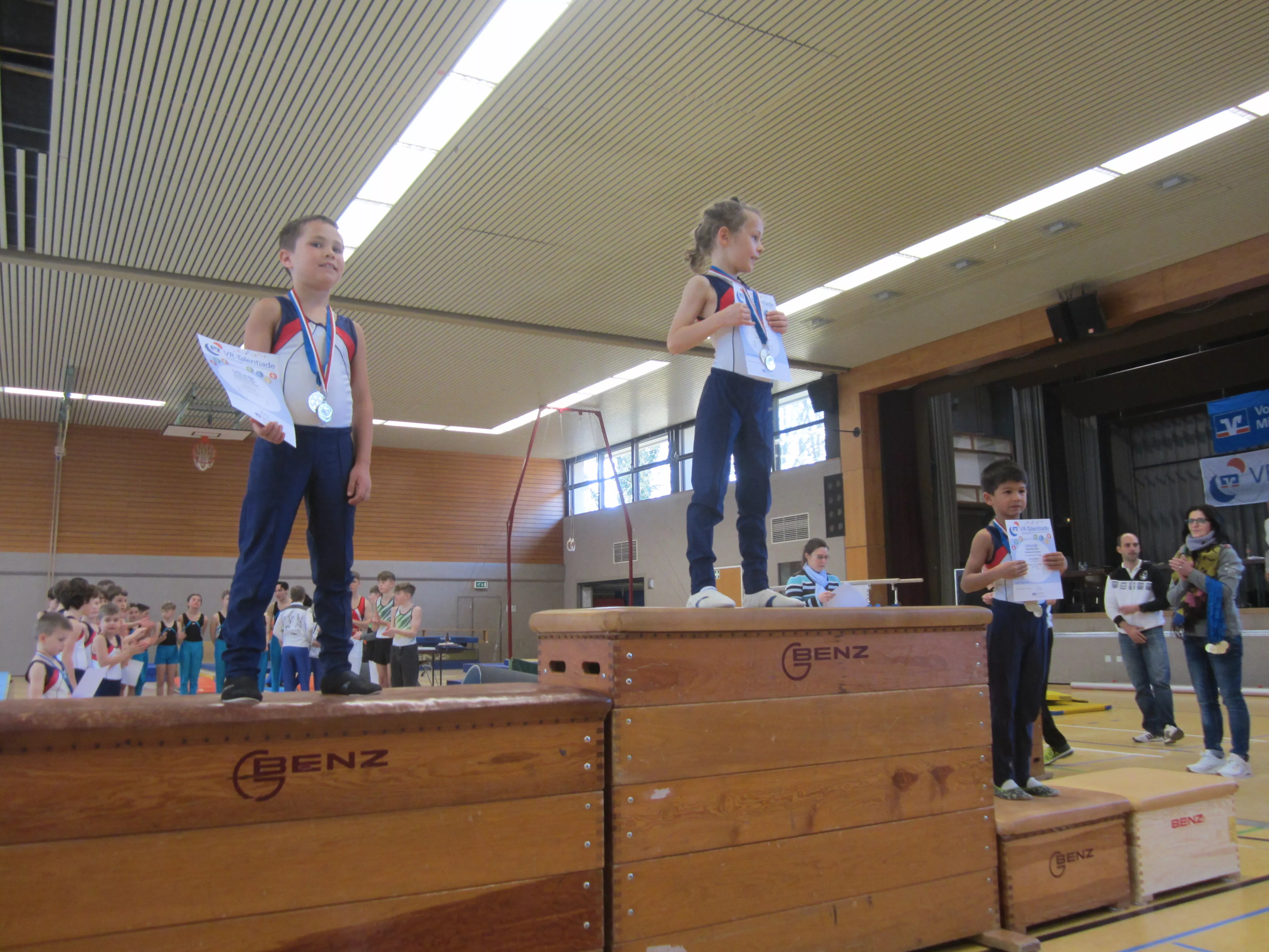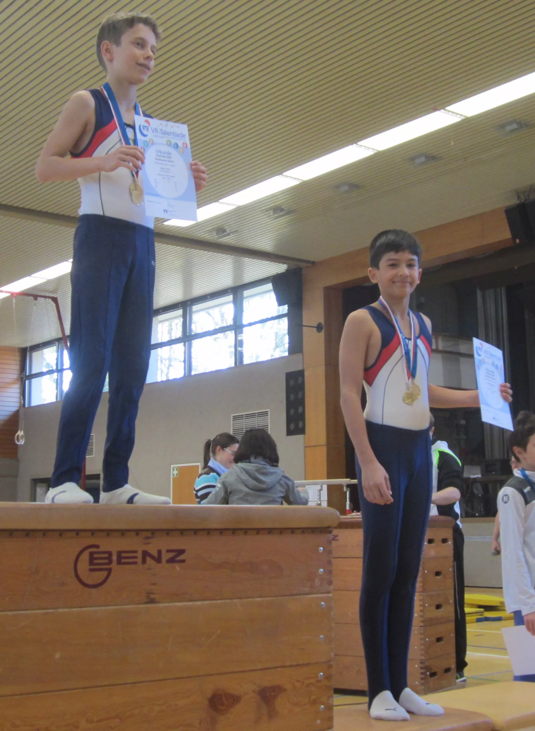 Überlegene Sieger in ihren Altersklassen wurden Adrian Lorenz und Nick Zimmermann. Adrian turnte am Pauschenpferd die Höchstnote von 16,4 Pkt. und Nick gelang dies am Sprung mit 16,2 Pkt. Einen spannenden Zweikampf um den 1. Platz lieferten sich Julian Scholze und Finn Lorenz. Durch die bessere Bodenübung gewann Julian (12,8 zu 12,2 Pkt.). Ebenso spannend war es bei den Achtjährigen. Hier siegte Nick Adam mit 0,1 Pkt. vor Hannes Hauck. Den fünften Titel erturnte sich Samuel Thüringer bei den Elfjährigen.