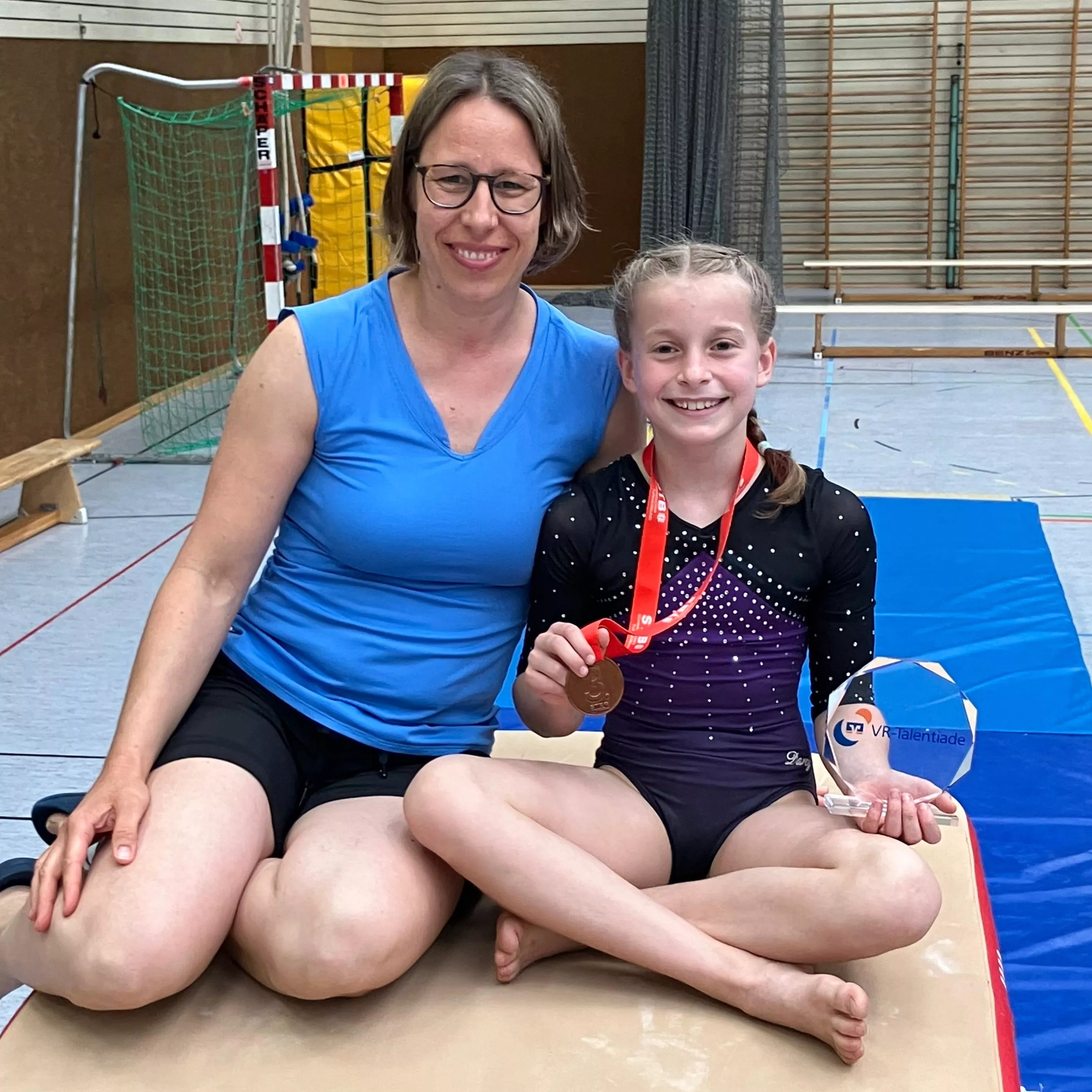 Am 22.06.24 fand in Öhringen das Landesfinale der P-Stufen statt. Marlene Tix qualifizierte sich zum zweiten Mal in Folge, was bisher noch keiner Wernauer Turnerin in diesem Wettkampf gelang. Über Ihren Sieg im Gaufinale und ihrem zweiten Platz im Bezirksfinale war sie auch dieses Jahr wieder mit dabei. Dieses Mal wollte sie unbedingt aufs Treppchen, nachdem es ihr letztes Jahr leider nicht gelang. Leider hatte sie sich ein paar Tage zuvor im Training am Fuß verletzt und war unsicher wie es im Wettkampf sein würde. Sichtlich nervös war sie dann beim Einturnen und beim Start am ersten Gerät, dem Balken. Zum Glück hielten die Nerven und sie erreichte trotz ein paar Wacklern tolle 14,50 Punkte. Nun war sie im Wettkampf angekommen!