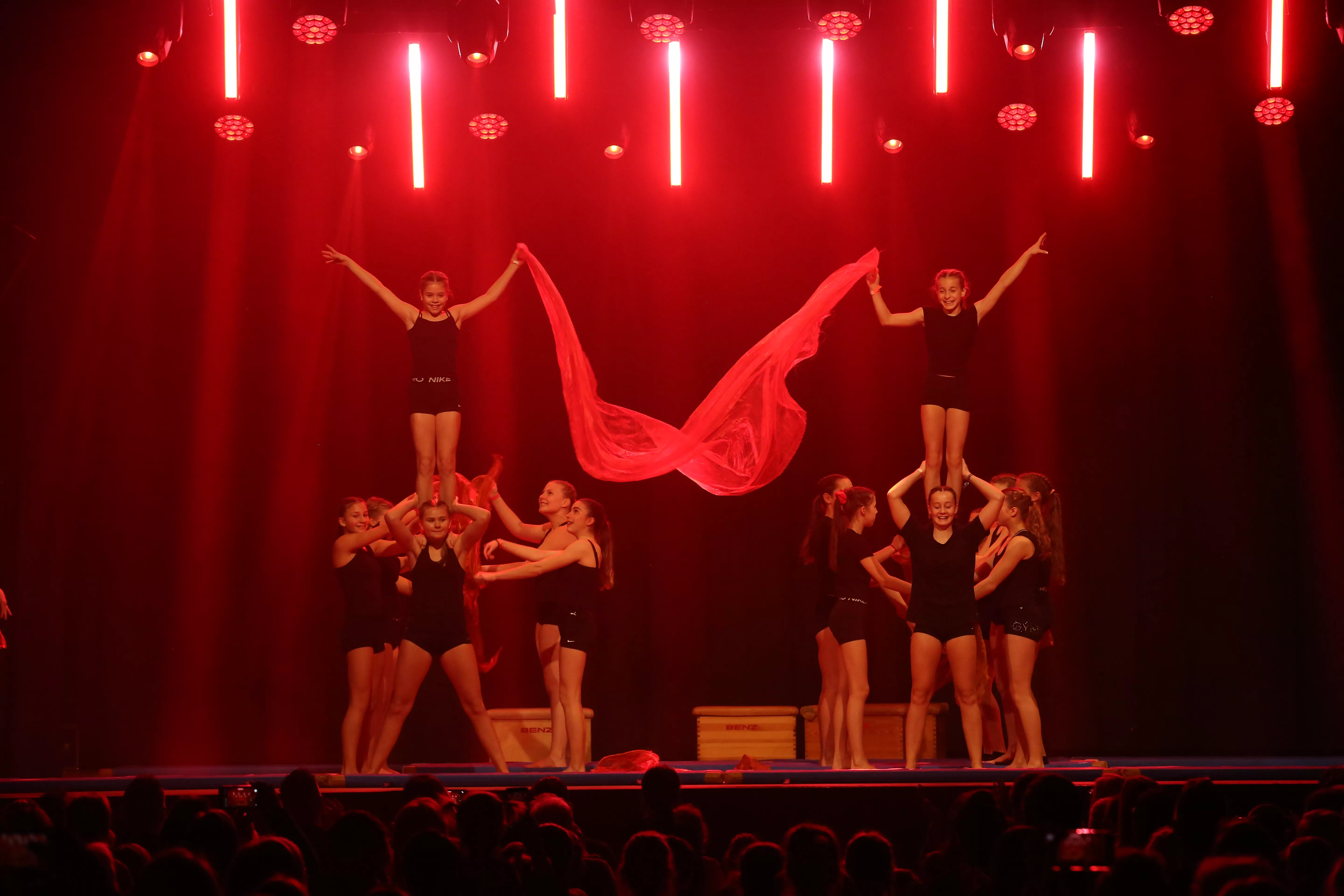 Nach einer kurzen Begrüßung unseres Abteilungsleiters, Benjamin Baron, begann das Programm mit unseren Jüngsten. Zusammen mit Mama/Papa oder Oma/Opa eroberten die Turnmäuse die Bühne und mit „Tatü Tata“ kam auch schon die nächste Gruppe des „Eltern-Kind-Turnens in Aktion. Danach ging es Schlag auf Schlag mit dem Tanzprojekt 1, dem Kinderturnen von 4 – 6 Jahren und der Turnschule weiblich von 6 – 7 Jahren weiter. Unser Motto „Feuer und Flamme“ wurde von allen Gruppen phantasievoll umgesetzt: war es die passende Musik, die passenden Outfits oder die ganze Show, es knisterte und loderte vor Energie.
