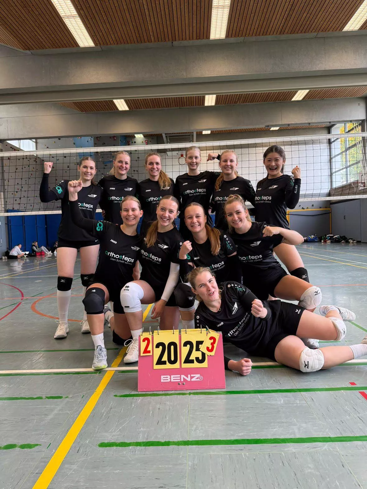 Im ersten Spiel zeigten die Mädels eine starke Teamleistung. Nach einem klar gewonnenen ersten Satz (25:14) folgte ein kleiner Durchhänger, wodurch Eislingen den zweiten Satz mit 25:23 für sich entschied. Danach fand unser Team wieder gut ins Spiel und sicherte sich mit 25:15 und 25:20 den verdienten 3:1-Sieg.
