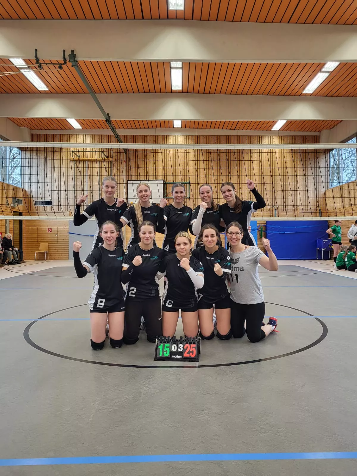 Mit viel Druck in unseren Aufschlägen, guten Annahme- und Abwehraktionen und starken Angriffen konnten wir alle 3 Sätze deutlich gewinnen.