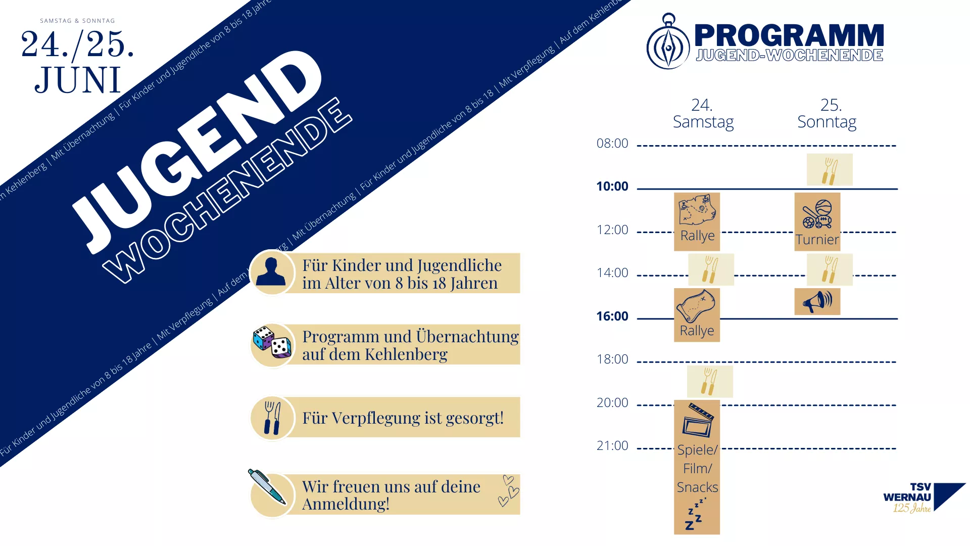 Am 24. und 25. Juni 2023 findet auf dem Kehlenberg das TSV-Jugendwochenende statt.