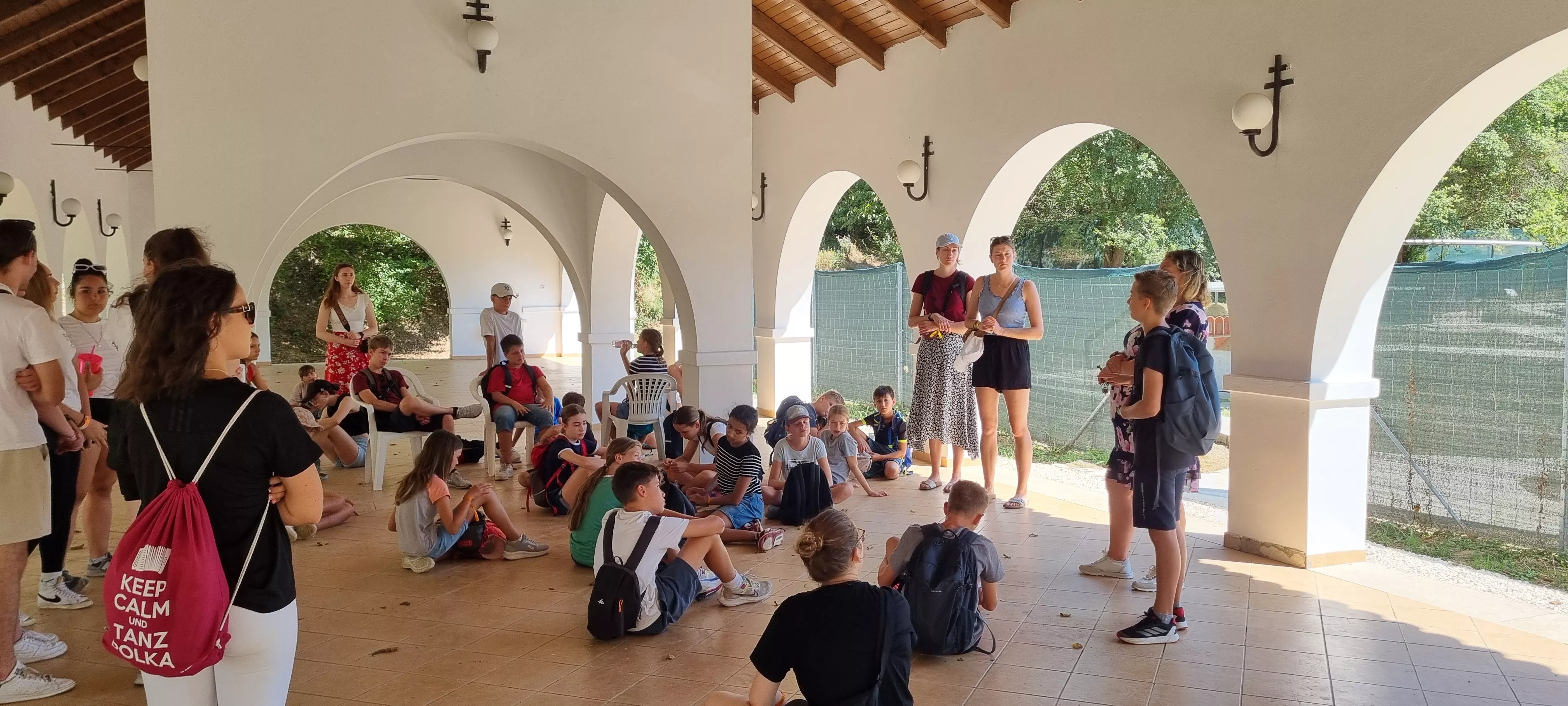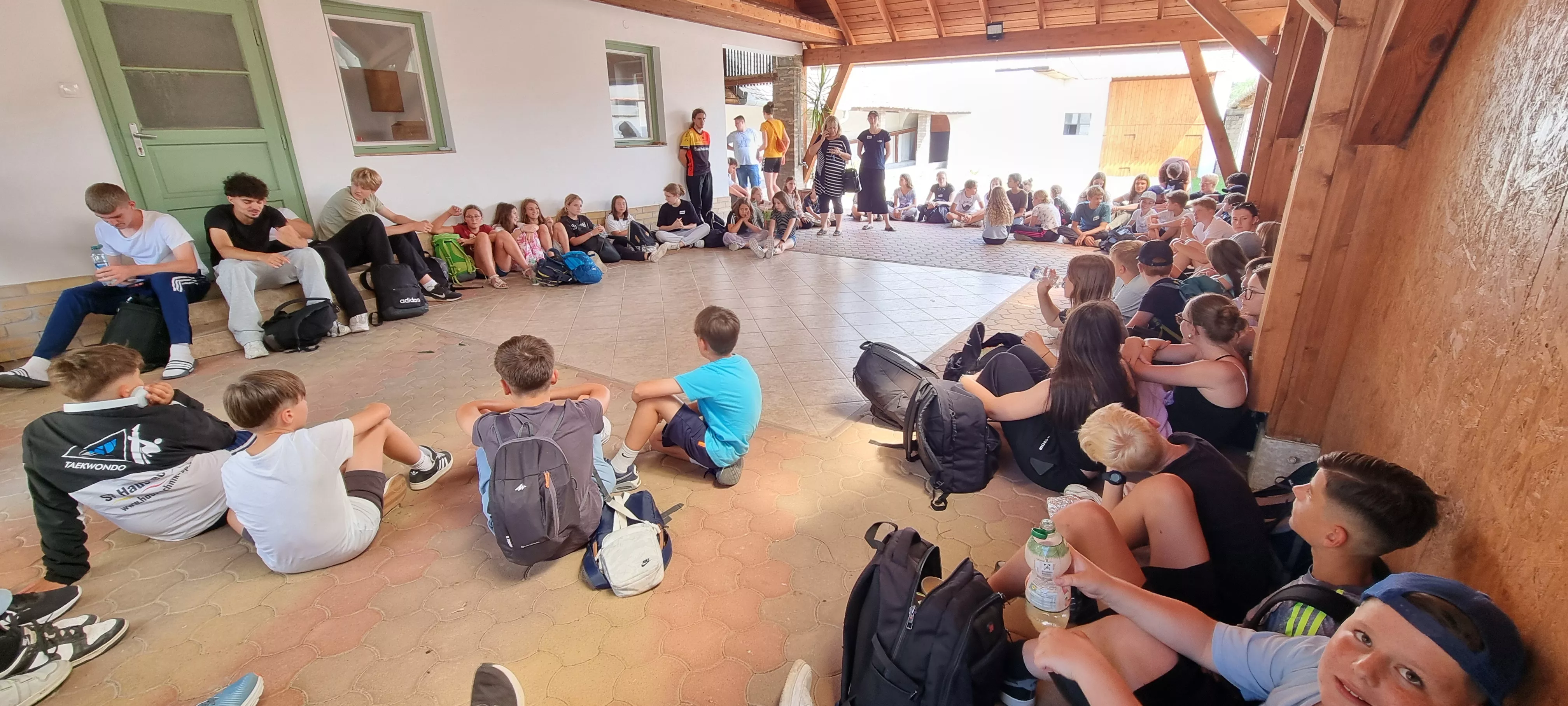 Die Reise begann am Abend des 2. August, als sich alle Teilnehmenden voller Vorfreude am Kirchplatz in der Stadtmitte einfanden. Nach einer rund vierzehnstündigen Busfahrt erreichten wir unser Ziel: das evangelische Internat in unserer Partnerstadt Bonyhád. Das Haus bot ideale Voraussetzungen für unsere Gruppe, mit vielen Schlafräumen, großen Gemeinschaftsräumen und einem weitläufigen Außengelände, das zum Spielen und Entspannen einlud.