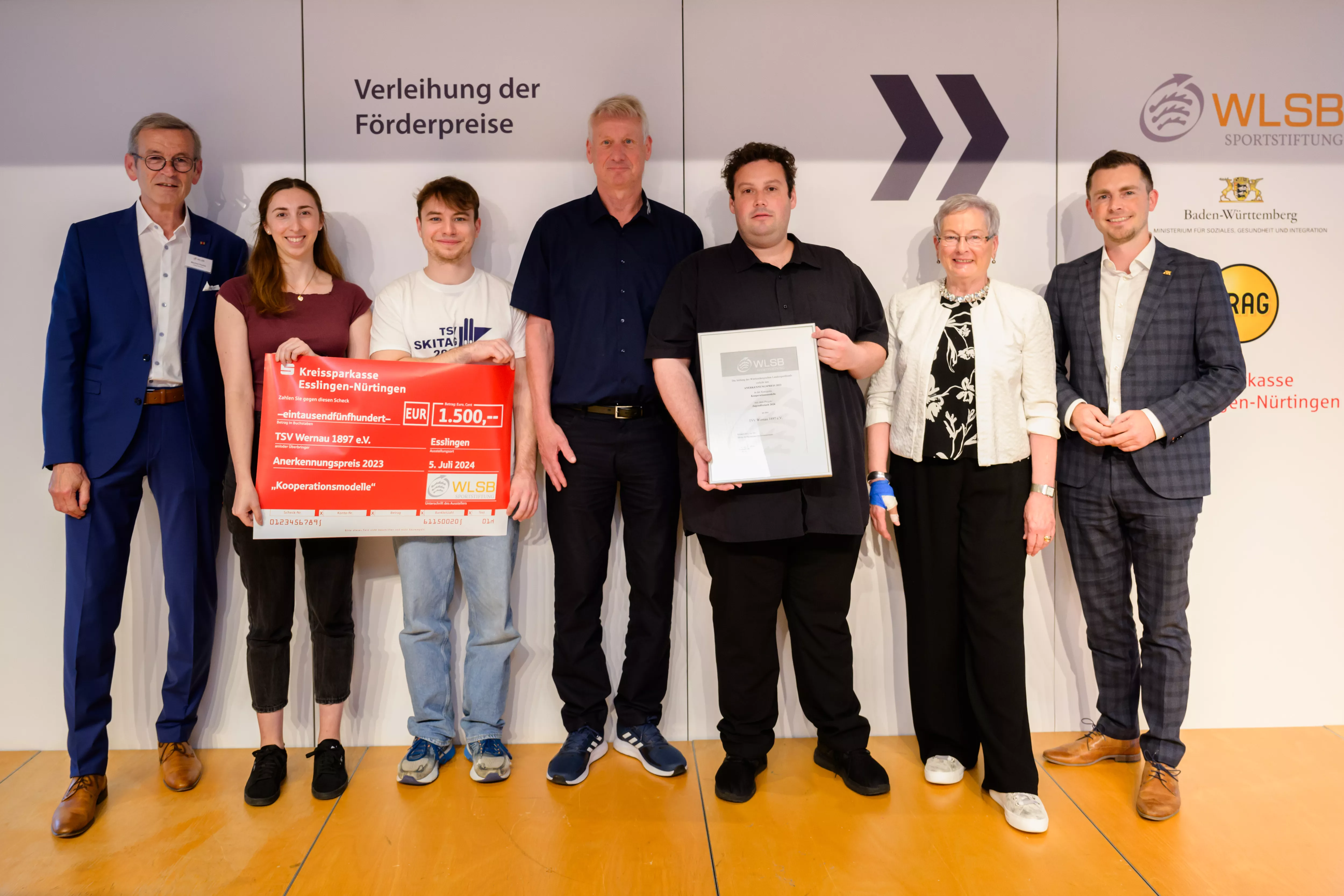 Am Freitag, den 5. Juli, wurden im Kronensaal der Kreissparkasse Esslingen-Nürtingen die Förder- und Anerkennungspreise für vorbildhafte Vereinsprojekte der WLSB-Sportstiftung verliehen. Der TSV Wernau hatte sich mit dem Projekt „Jugendfreizeit 2024” in der Kategorie „Kooperationsmodelle” beworben und wurde mit einem Anerkennungspreis in Höhe von 1.500,00 Euro ausgezeichnet.
