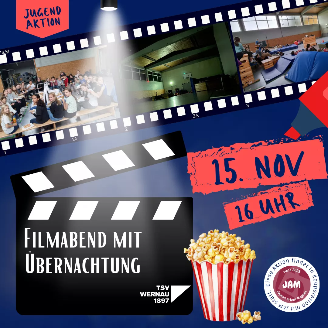 Am 15. November verwandelt sich die Kehlenberghalle mal wieder in ein Kino mit Popcorn und anschließender Übernachtung(sparty) 🥳